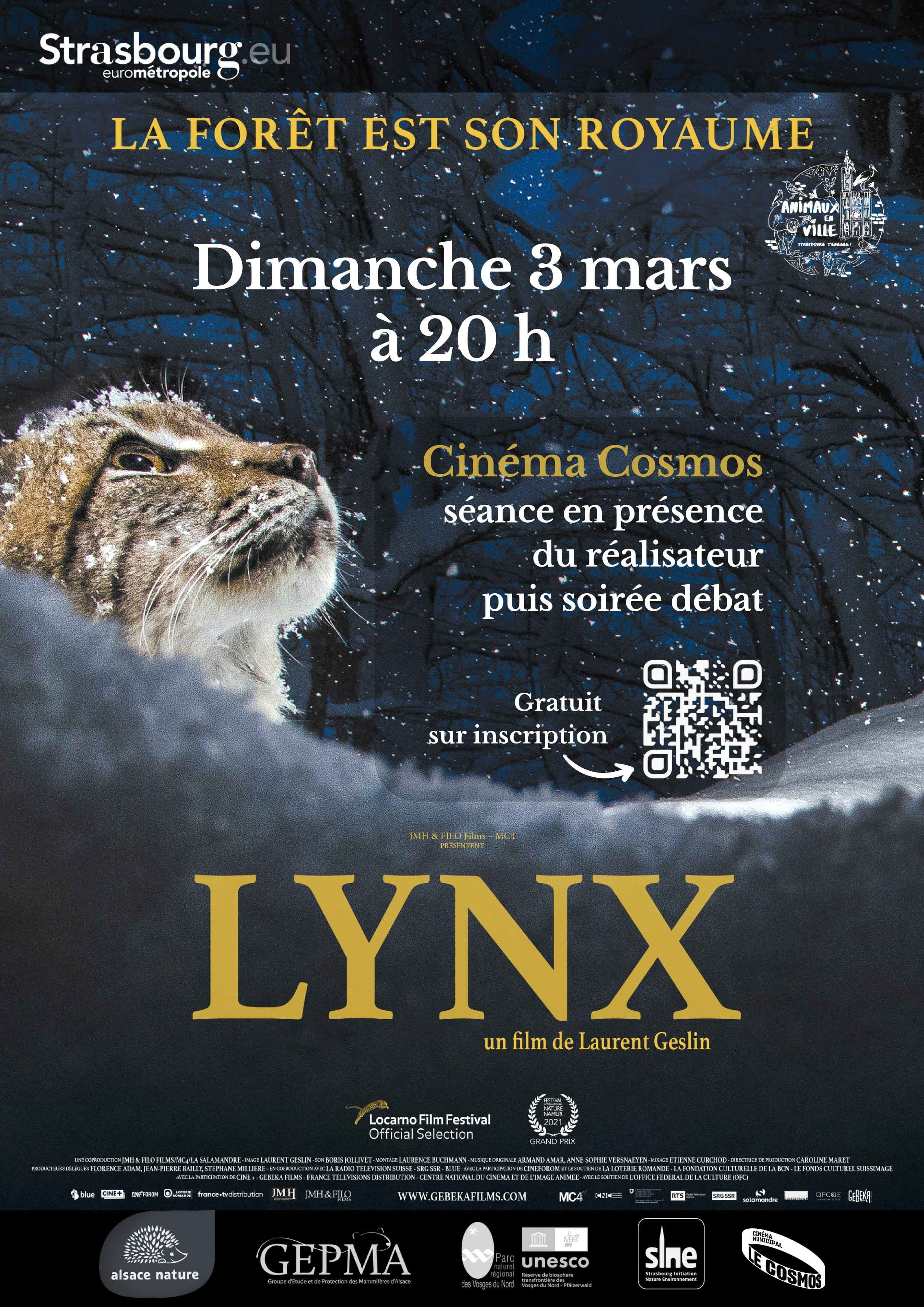 Projection du film Lynx, en présence de Laurent Geslin qui nous fait découvrir sa passion du lynx et de la forêt jurassienne.