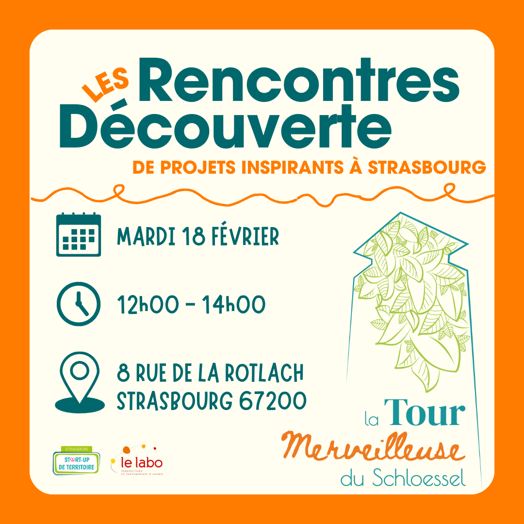 La rencontre découverte c’est quoi ? C’est l’occasion de découvrir la dynamique Start-Up et ses projets inspirants ; le tout au coeur d’un lieu comme nous les aimons La Tour Merveilleuse du Schloessel