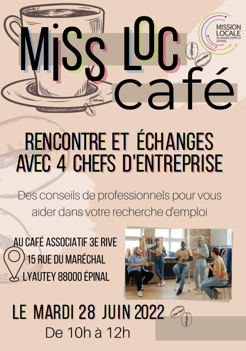 Rencontre / échanges avec 4 chefs d'entreprise – ouvert à tous les jeunes de 16 à 25 ans . Des conseils de professionnels pour vous aider dans votre recherche d'emploi. Avec la Mission Locale