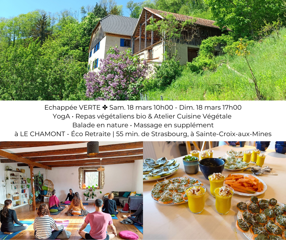 En duo avec LAURA FB@LauraRameneTaQuetsche, rejoignez-nous pour une Échappée Belle au diapason des énergies du PRINTEMPS ♡ Une parenthèse de 2 journées pour soi, hors du quotidien, pour un nouvel élan et une nouvelle saveur du quotidien, dans un écrin de verdure à 55 min. de Strasbourg, en connexion avec le vivant.