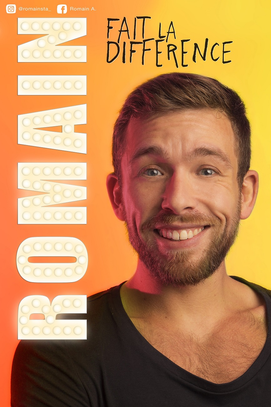Romain aime faire des sketchs rigolos sur des thèmes pas rigolos. Et ça a donné « Romain fait la différence ». Pourquoi ce titre ? Pour se la péter un peu. En même temps il peut. Entre la danse, la comédie et le chant, son show c’est Vegas sans un sou.