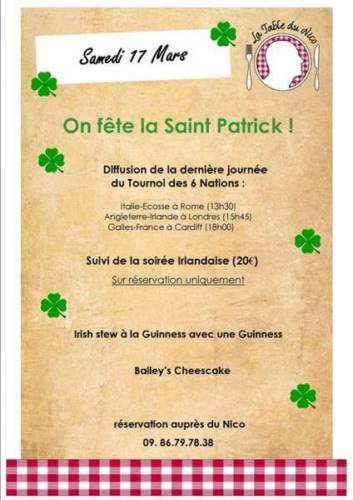 Le 17 Mars nous fêtons la Saint Patrick à La Table du Nico. Venez nombreux ! (sur réservation uniquement)