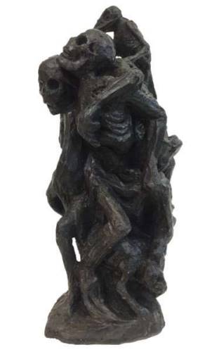 Antoine Halbwachs expose ses dernières créations, sculptures et gravures. Comme point de départ le thème des danses macabres, une série de pièces en terre cuite, puis un travail autour de crânes d’animaux rongeurs, canidés et oiseaux. Tout cela peut paraître bien morbide mais pourtant au travers de ce cheminement dans la forme et la matière ce sont des sculptures pleine de vie et de fougue que nous proposent cet artiste.