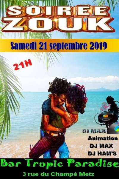 Le bar TROPIC PARADISE vous transportera : destination Les Îles ;SAMEDI 21 SEPTEMBRE , à partir de 21H00 , pour une soirée endiablée , aux couleurs des rythme ensoleillés
