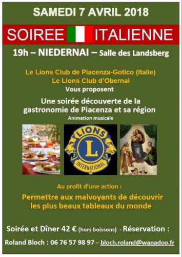 Le Lions Club de Piacenza et d’Obernai (jumelé) ont organisé un dîner de charité pour les aveugles.