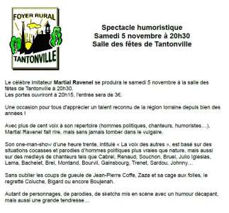 Le célèbre imitateur Martial Ravenel se produira le samedi 5 novembre à la salle des fêtes de Tantonville à 20h30.