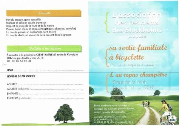 L’ARS (Association des Résidents des Stockholms) de Yutz organise sa traditionnelle sortie (familiale) à vélo.