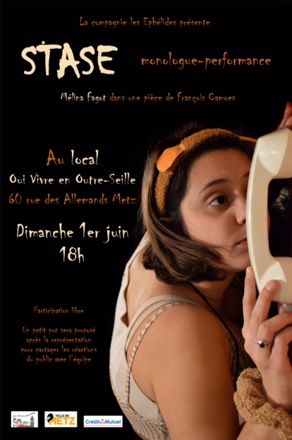 Nouveau monologue performance de la compagnie les Ephélides en représentation au local de Oui, Vivre en Outre-Seille à Metz.