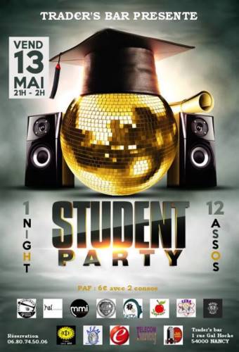 Objectif Terre, Hec initiative, MMI, GEA, Ekos, Japaden, Cens, Miage, Phi-Sciences, AFEM, ESSTIN, Telecom, Marie Marvingt... Autant d’assos étudiantes qui seront présentes ce Vendredi 13 mai au Trader’s !