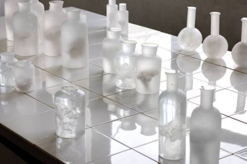 La démarche de Pascale Klingelschmitt rend palpable l’invisible. En effet, aux questions diverses liées aux structures matérielles des organismes vivants, leur temporalité ou leur état de mutation, l’artiste répond avec des ’matières dures’ réunissant trois médiums autour d’installations ou de pièces uniques : la terre, le verre et la gravure. Afin de révéler l’intimité du vivant et des sciences, elle use des outils d’observation