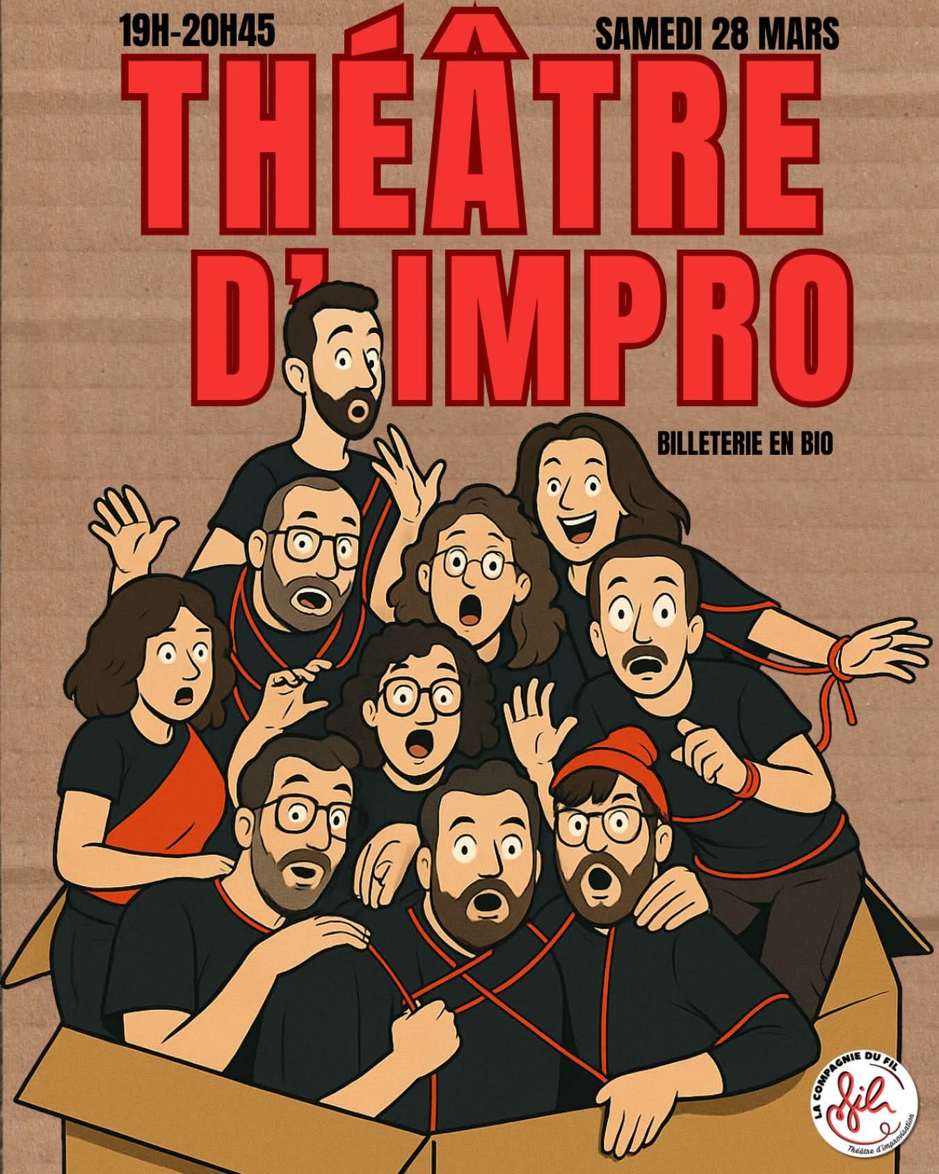 La Compagnie du Fil, nouvelle troupe de Théâtre d'improvisation sur Strasbourg et en Alsace, revient au Carton bar pour un show déjanté et enjoué pour accueillir le printemps de la meilleure des façons !
