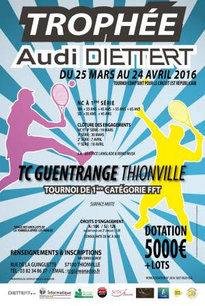 Le trophée Audi Diettert se tiendra du vendredi 25 mars 2016 au dimanche 24 avril 2016 inclus, pour dames et messieurs. Le tournoi est proposé par le Tennis-club de Guentrange-Thionville.