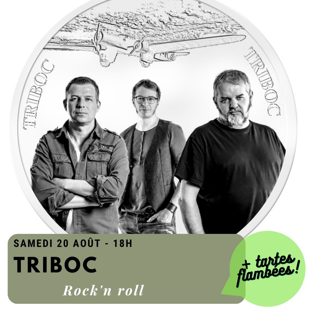 Venez à pied ou à vélo au concert de Triboc (rock grunge), samedi 20 aout à 18h au Ravito des Cyclos ! Un trio de rock électrique et énergique, accompagné de tartes flambées et buvette bio locale !