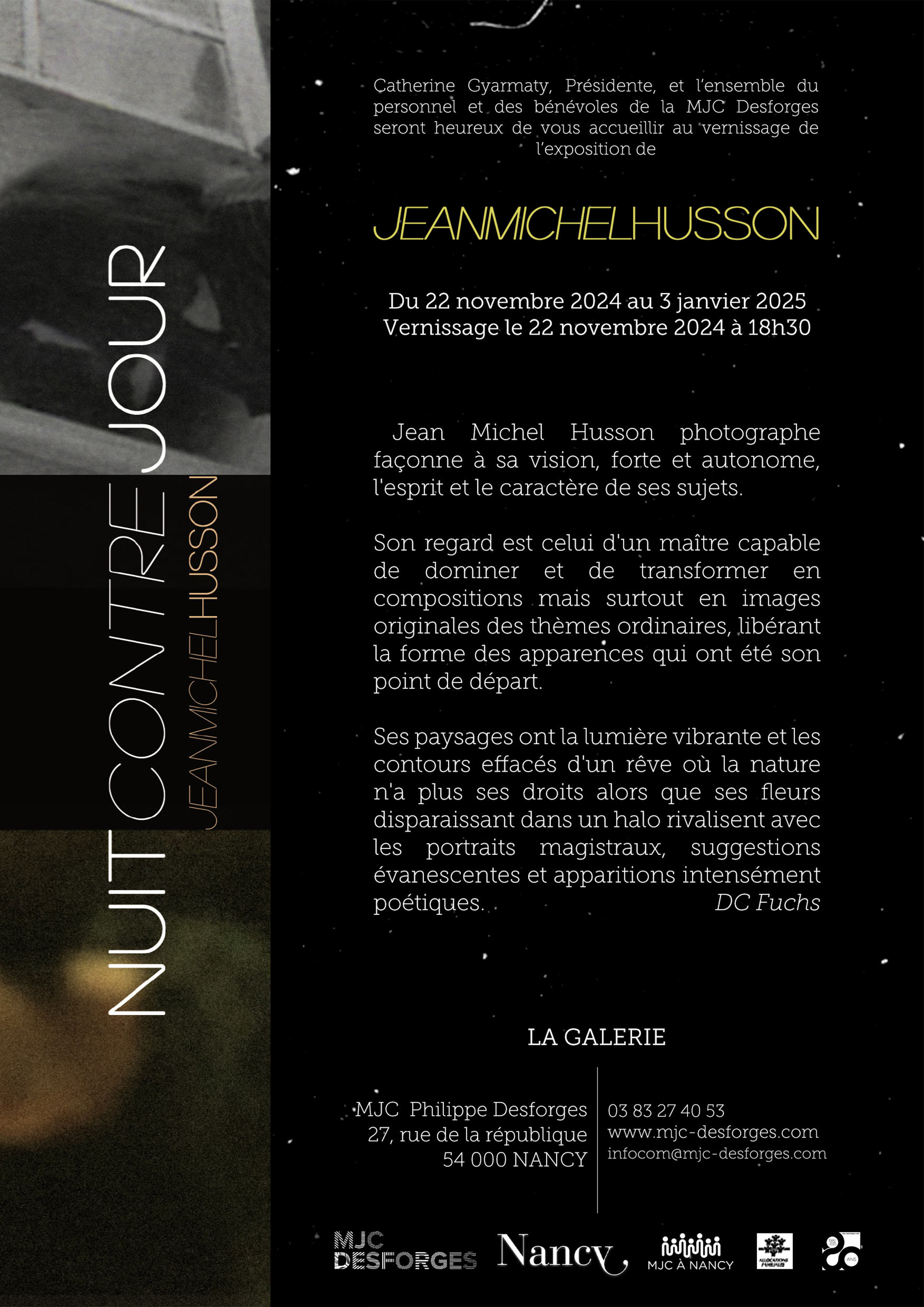 Né en 1959, le nancéien Jean-Michel Husson empoigne la photographie « naturellement » aux Beaux-Arts. Si ses études d'architecture le poussent vers le métier de chef décorateur pour la télévision et le théâtre, puis vers l'architecture d'intérieur, il mène un travail personnel, que sa rencontre avec Claude Philippot, à la galerie Robert-Doisneau de Vandoeuvre (54), l'amène à approfondir. Dans ses images, deux constantes s'entremêlent : la lutte contre le temps qui s'effiloche et la quête de la matière, à travers un grain quasi organique. « J'ai conservé cela de la pratique de la gravure », dit celui qui s'ingénie à dompter des techniques contradictoires, allant jusqu'à utiliser le négatif 8X11 mm du « Minox de James Bond ».