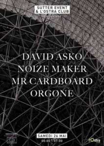 SUTTER EVENT invite DAVID ASKO (A-Traction Rec) + NOIZE MAKER (XLR Event) + Mr CARDBOARD + ORGØNE