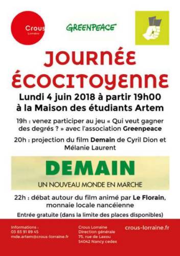 - à 20h : Diffusion du film Demain