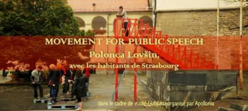 Dans le cadre du projet e.cité - Ljubljana (http://www.apollonia-art-exchanges.com/fr/e-cite-ljubljana/), l’association Apollonia vous invite à prendre part au projet de l’artiste slovène Polonca Lov?in, Movement for Public Speech.