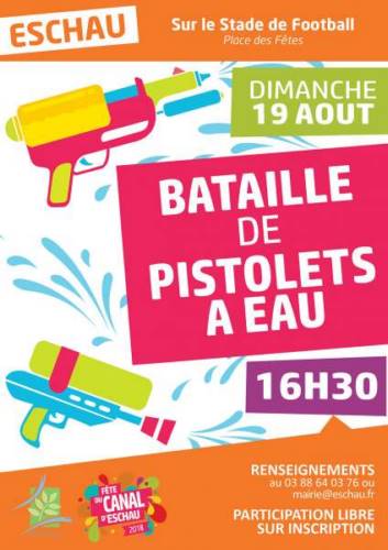 Télécharger le bulletin d’inscription de la bataille de pistolets a eau 2018 : http://www.eschau.fr/images/2018/06/bataille-de-pistolets-a-eau-2018.pdf