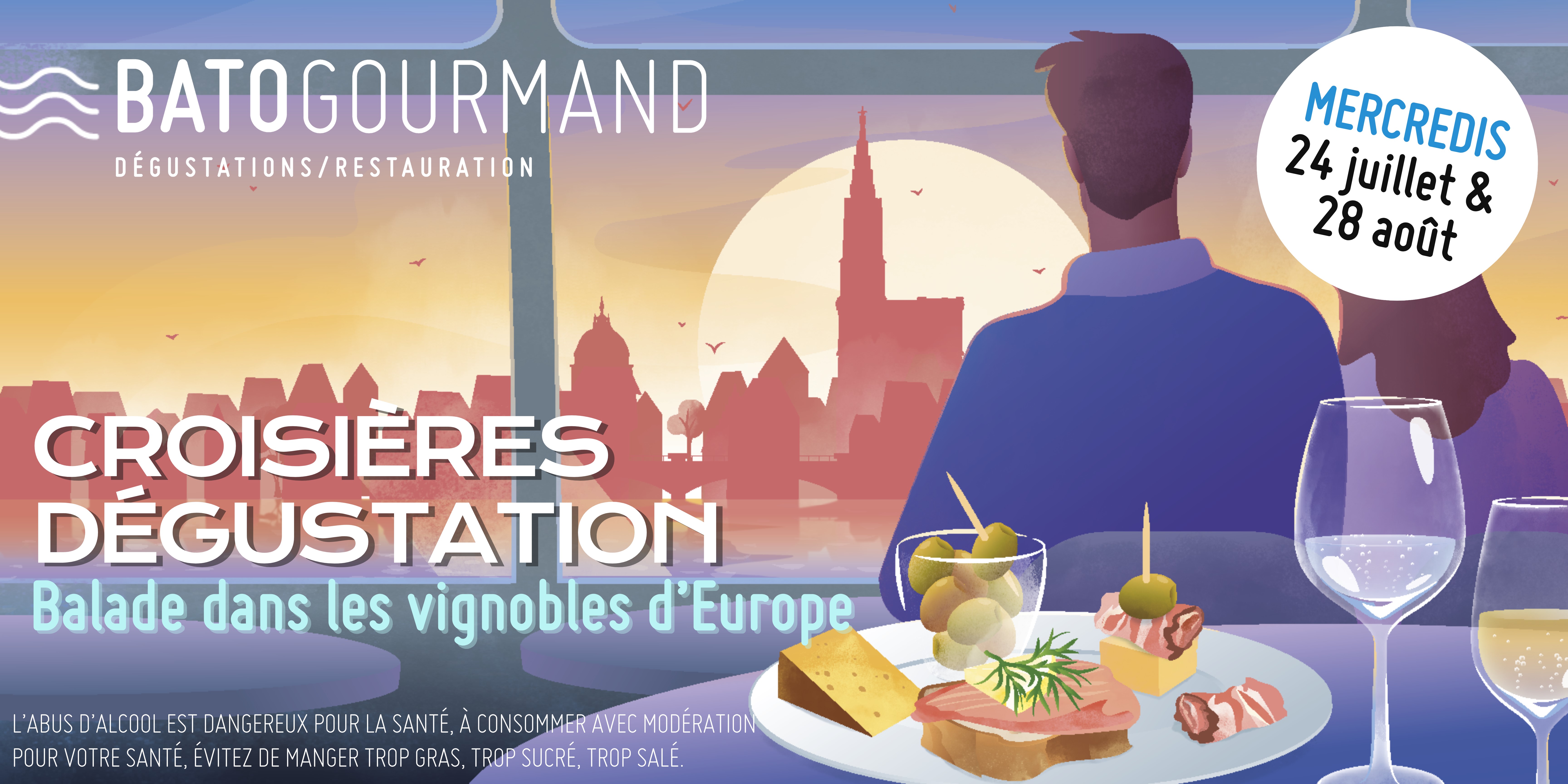 Pendant la période estivale, embarquez à bord de ces croisières, orchestrées par Batorama et le bar Un Cantalou à Strasbourg, les mercredis 24 juillet & 28 août 2024 sur le thème de "la balade dans les vignobles d’Europe".