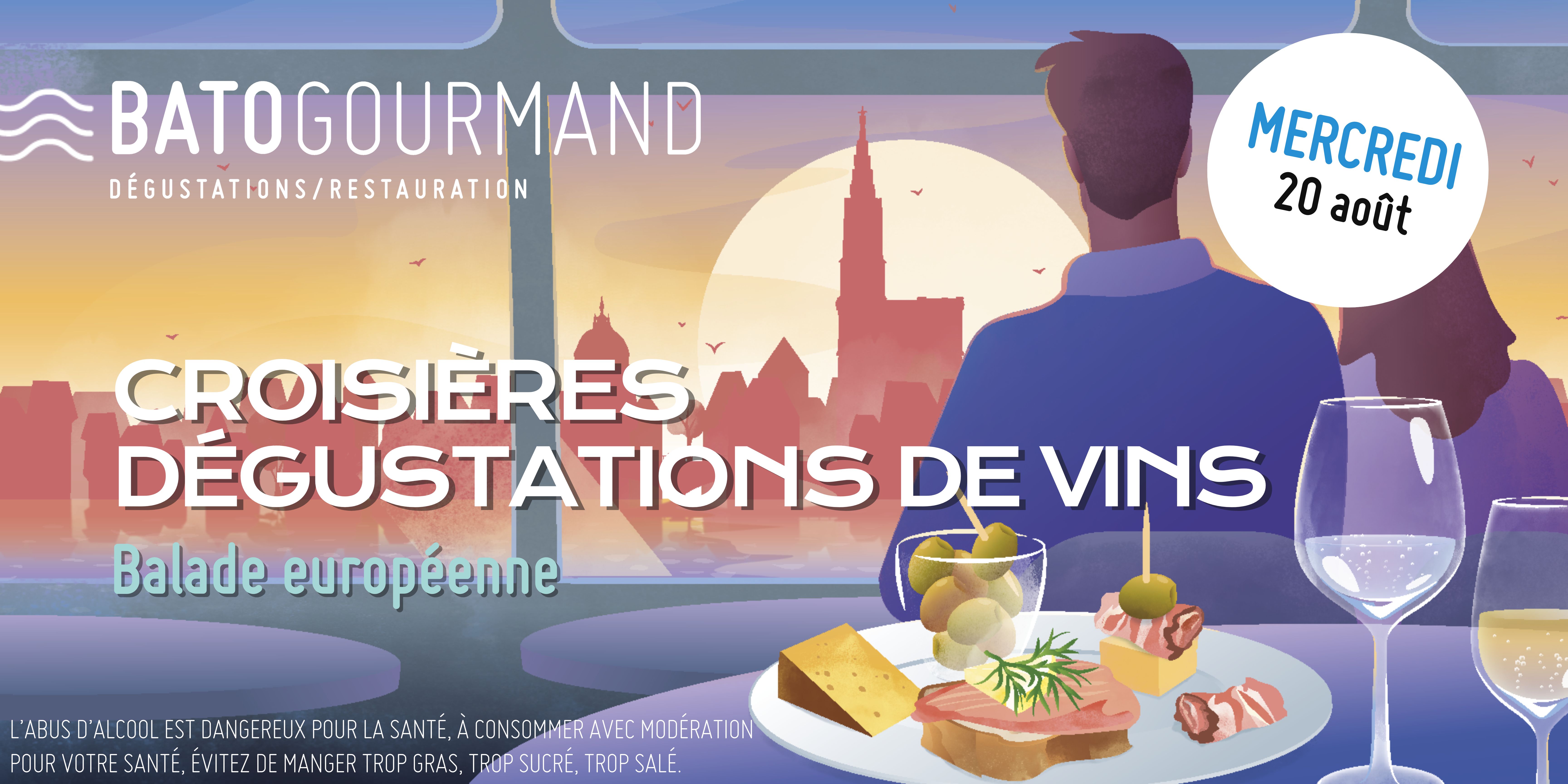 Cap sur 4 vins d’Europe pour une escapade œnologique en plein cœur de Strasbourg, au fil de l’Ill. À bord : une dégustation commentée, une assiette gourmande à partager, et une ambiance conviviale et raffinée pour un moment hors du temps.