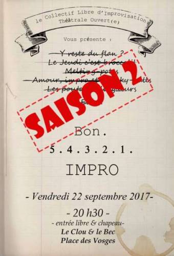 Le CLITO ( Collectif Libre d’Improvisation Théâtrale Ouvert(e)) revient au Clou et le Bec pour une deuxième saison. On vous promet une soirée haute en sensation.