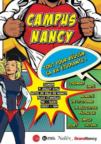 La Communauté urbaine du Grand Nancy, l’Université de Lorraine et le CROUS Lorraine, en partenariat avec de nombreux autres acteurs, invitent les néo-bacheliers et leurs parents, ainsi que tout étudiant à la recherche d’informations, à la première édition de la journée d’accueil et d’information Campus Nancy - Tout pour réussir sa vie étudiante ! qui se déroulera le samedi 9 juillet 2016 de 9h00 à 18h00 dans les Salons de l’Hôtel de Ville de Nancy, entrée Place Stanislas (entrée libre).