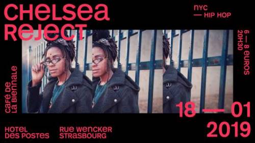 Chelsea Reject, Poètes et Mc originaire de Brooklyn, se fait entendre pour la première fois en 2013, avec sa mixtape ’RADI8’, cette dernière trouve l’oreille du célèbre producteur DRUHA, membre fondateur du label new yorkais DUCK DOWN et rentre officiellement dans l’écurie en 2014.Depuis sa signature avec DUCK DOWN, Chelsea écume les scènes aux États Unis, ansi qu’en Europe, elle ouvrira pour des artistes comme BREAL (CYPRESS HILL), METHOD MAN & REDMAN, MICK JENKINS, KIRK KNIGHT (PRO ERA) et bien d’autres, elle assurera même en 2015 une tournée complète à travers le Japon.Elle est également invitéà poser dans plusieurs Cypher sur New York, par Team File, Cypher Effect, HotnewHiHop, Shade45 etc...Sur son dernier album #CMPLX, sortie chez DUCK DOWN en 2016, elle invite ses potes de PRO ERA,TNAH Apex, CJ FLY, Nick Caution, Kirk Knight et Dyemond Lewis.Elle est actuellement en studio, et prépare son prochain EP, prévu pour fin 2017.