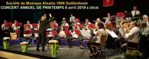 La Musique Alsatia 1906 de Duttlenheim, sous la direction de Mylène Schweitz-Grauss et Noël Grauss, invite à son concert annuel de Printemps.