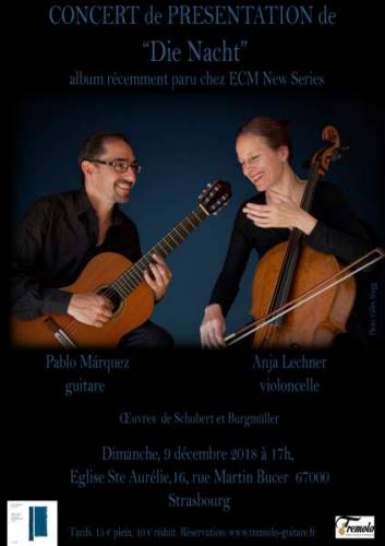 Ils vous présenteront ce nouveau CD, intitulé Die Nacht, lors du concert de présentation, organisé par L’Association Tremolo, le dimanche 9 décembre à l’église Ste Aurélie (16, rue Martin Bucer, 67000 Strasbourg) à 17h00.