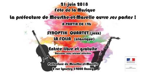 Le 21 juin 2018, à l’occasion de la fête de la musique, Eric Freysselinard, préfet de Meurthe-et-Moselle, ouvre les portes de la préfecture pour une soirée-concert.