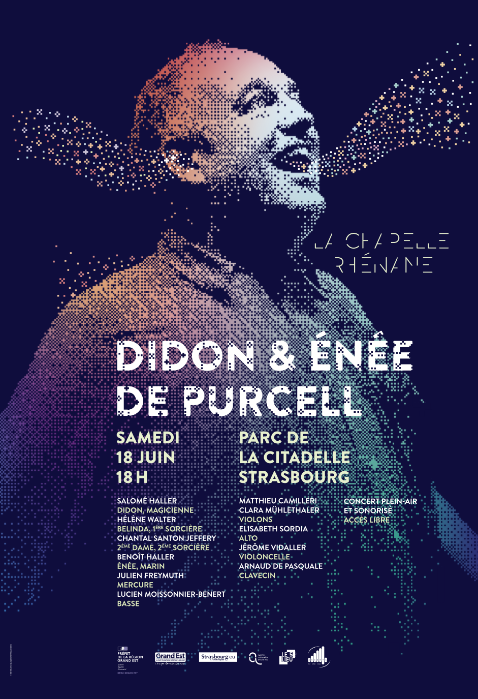Le projet culturel de La Chapelle Rhénane repose autant sur l’excellence artistique de création que sur la volonté d’ouvrir le répertoire baroque au plus grand nombre : le jeune public dans toute sa variété de la maternelle au lycée, la part du grand public qui ne s’intéresse pas spontanément à la musique classique. À l’instar du King Arthur donné en concert plein-air en juin 2021 au Parc de la Citadelle, La Chapelle Rhénane propose de renouveler l’expérience et vous invite cette fois à découvrir le célèbre Didon et Énée d’Henry Purcell.
