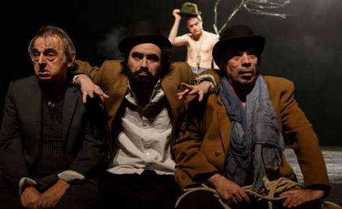 Il relie les étoiles et les navets, invite le philosophe, le clown et le spectateur à la même table pour résister par le plaisir. » On s’amuse ici à suivre les deux clochards, Vladimir et Estragon, sur cette route de campagne où ils attendent ce fameux Godot. L’air de rien, ils nous amènent à repenser le monde. Et lorsqu’ils croisent deux étranges personnages, Pozzo et Lucky, le maître et son serviteur, d’autres questions surgissent qui mettent en jeu la cruauté, l’absurdité, le délire. À travers la langue, l’amour des mots, l’humour, Vladimir et Estragon, paumés dans leur coin perdu, donnent finalement du sens à l’humanité, à la fraternité et peut-être même à la vie.
