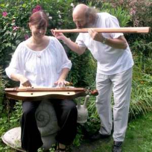 Isabelle Loeffler, conteuse, chanteuse et polyinstrumentiste joue de la guitare, de l’épinette, du dulcimer, flûtes diverses ...avec la complicité de Roland Engel à l’accordéon.