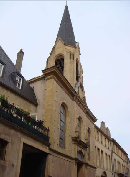 Construite en 1893 par des Luthériens, l’église est le deuxième lieu de culte protestant construit à Metz au cours de l’Annexion allemande après le temple de la garnison. La confession d’Augsbourg, écrite par Melanchthon en 1531, est le texte fondateur du Luthéranisme qui est la théologie fondée à partir des écrits et des pensées de Martin Luther. Architecture de style néo-renaissance simple et épurée. Façade en pierre de Jaumont. L’espace intérieur est rythmé par les tribunes en bois supportées par de fines colonnettes en fonte. La configuration étroite et irrégulière de la parcelle impose un éclairage zénithal de forme octogonale. Seul le chœur est éclairé de cinq larges baies.Lieu : 41 rue Mazelle, Metz
