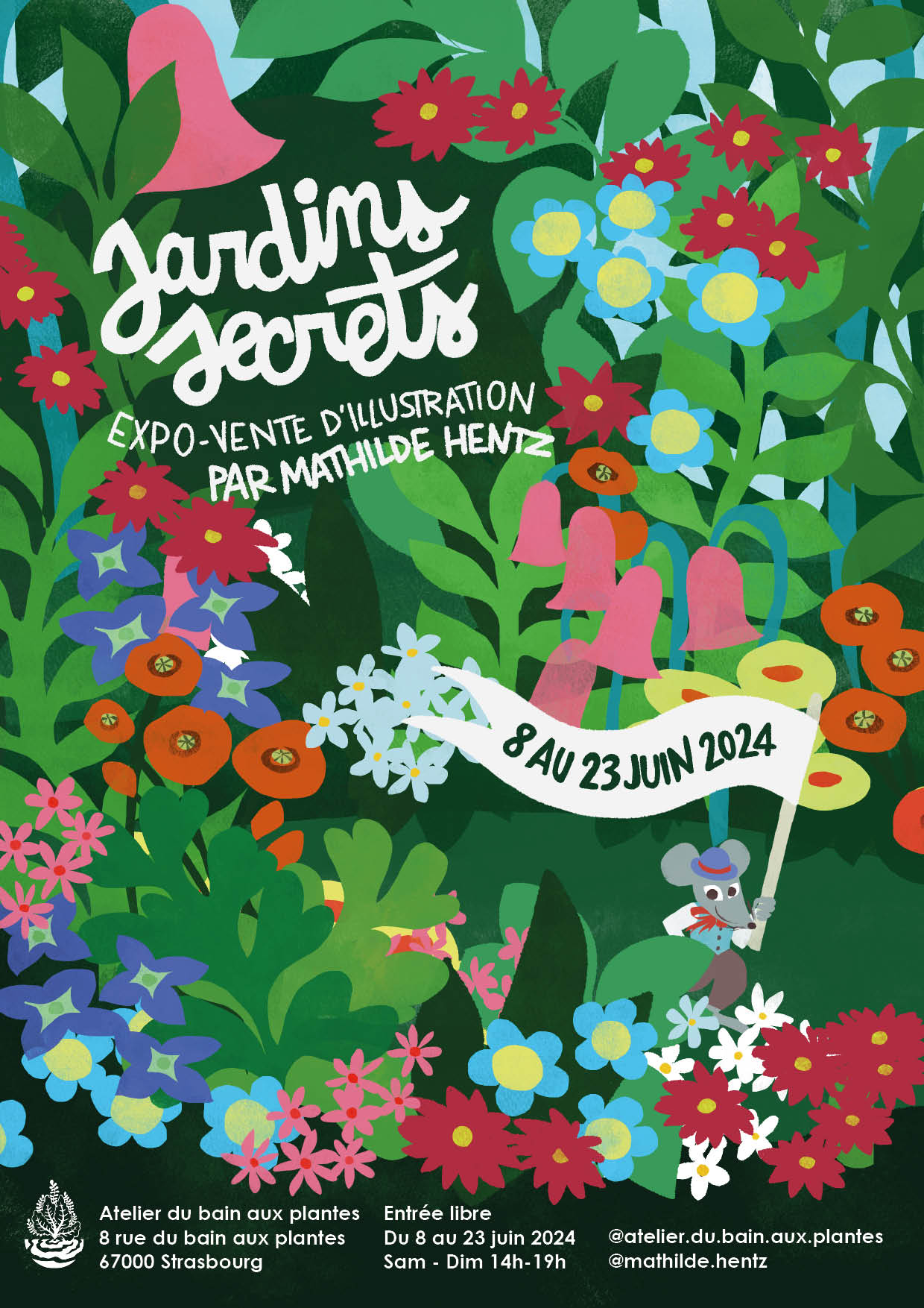 Jardins secrets, c'est la première exposition solo de Mathilde Hentz, illustratrice et membre de l'Atelier du bain aux plantes.