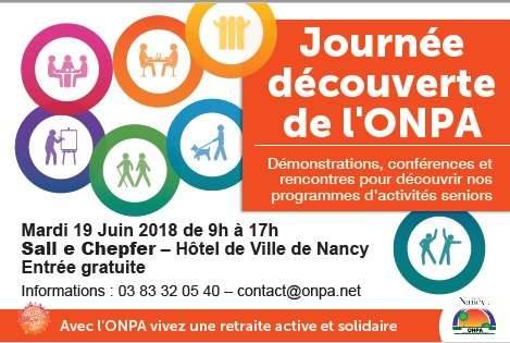 Vous êtes senior de 55 ans ou plus - Venez découvrir le programme d’activités de l’ONPA, association nancéienne qui propose plus de 40 activités (culture, activités physiques, jeux, rencontres, voyages, séjours, bénévolat).
