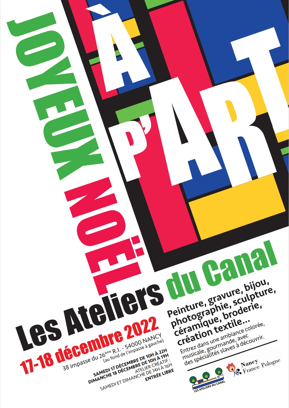 Entrez dans une ambiance colorée, musicale, gourmande, avec des spécialités slaves à découvrir : la convivialité sera de la partie pour ce moment partagé proposé par les Ateliers du Canal, en partenariat avec l’association Nancy France-Pologne.