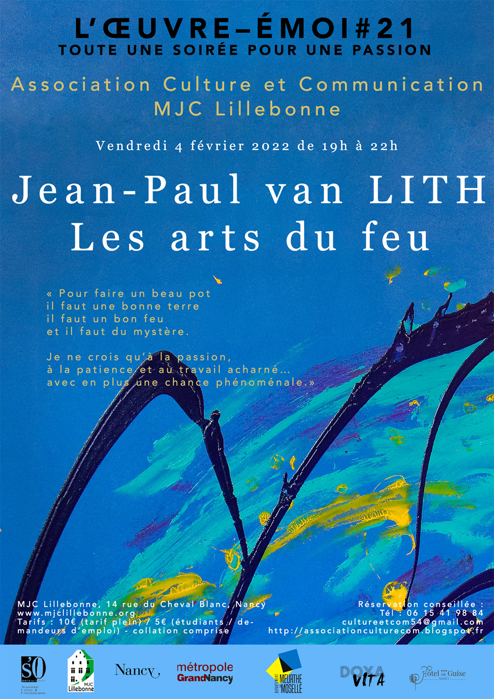 Jean-Paul van LITH, né en 1940 à Argenteuil, est un artiste pluridisciplinaire. Il travaille la céramique, le cristal, le verre et le métal dans son atelier de Biot où il est installé depuis 1974. Par ailleurs, il peint, sculpte et écrit.