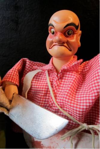 La véritable histoire de Saint Nicolas ou le gros jambon est une vision décalée de l’histoire traditionnelle racontée en marionnette à gaine chinoise.Un trophée d’un cochon, tué par le boucher sanguinaire, se ranime pour mettre en garde les petits et nous raconte l’histoire en vers. Tous les éléments traditionnels sont là mais le boucher tue les enfants un à un avec des techniques assez surréalistes (guillotine, nunchaku, fourchette géante, couteaux bien aiguisés), et Saint Nicolas déjà très âgé donne quelques signes avant-coureurs d’un début d’Alzheimer.