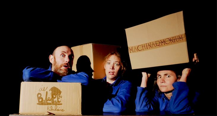 La Cie Bas les Pat’Hibulaire s’empare d’un univers à la fois trivial et onirique pour bricoler des sons, des chansons, et construire des ponts entre les cartons et la Machinarmonium, entre le réel et l’irréel, entre la physique et la pataphysique.
