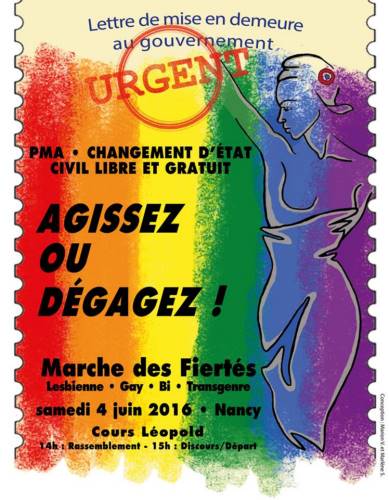 Venez nous rejoindre le SAMEDI 4 JUIN pour l’édition 2016 de la Marche des Fiertés Lesbiennes, Gays, Bi et Transgenres de Nancy !
