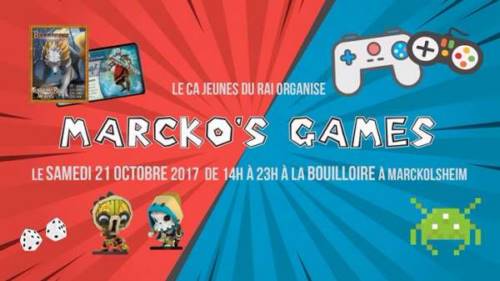 Cette année le C.A. Jeunes du RAI organise sa première convention de jeux MARCKO’S GAMES. Elle aura lieu le 21 octobre 2017 à la Bouilloire à Marckolsheim.