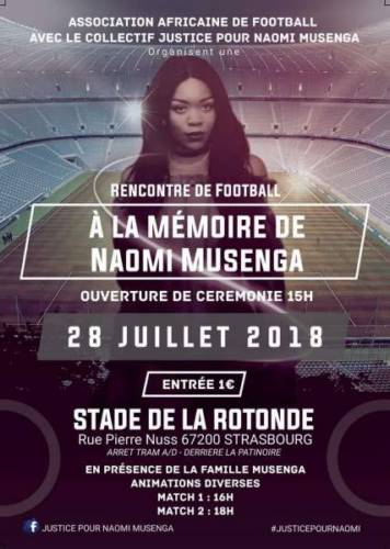 L’association de football africaine de Strasbourg avec le collectif "Justice Pour Naomi Musenga" organisent une rencontre de football en sa mémoire.