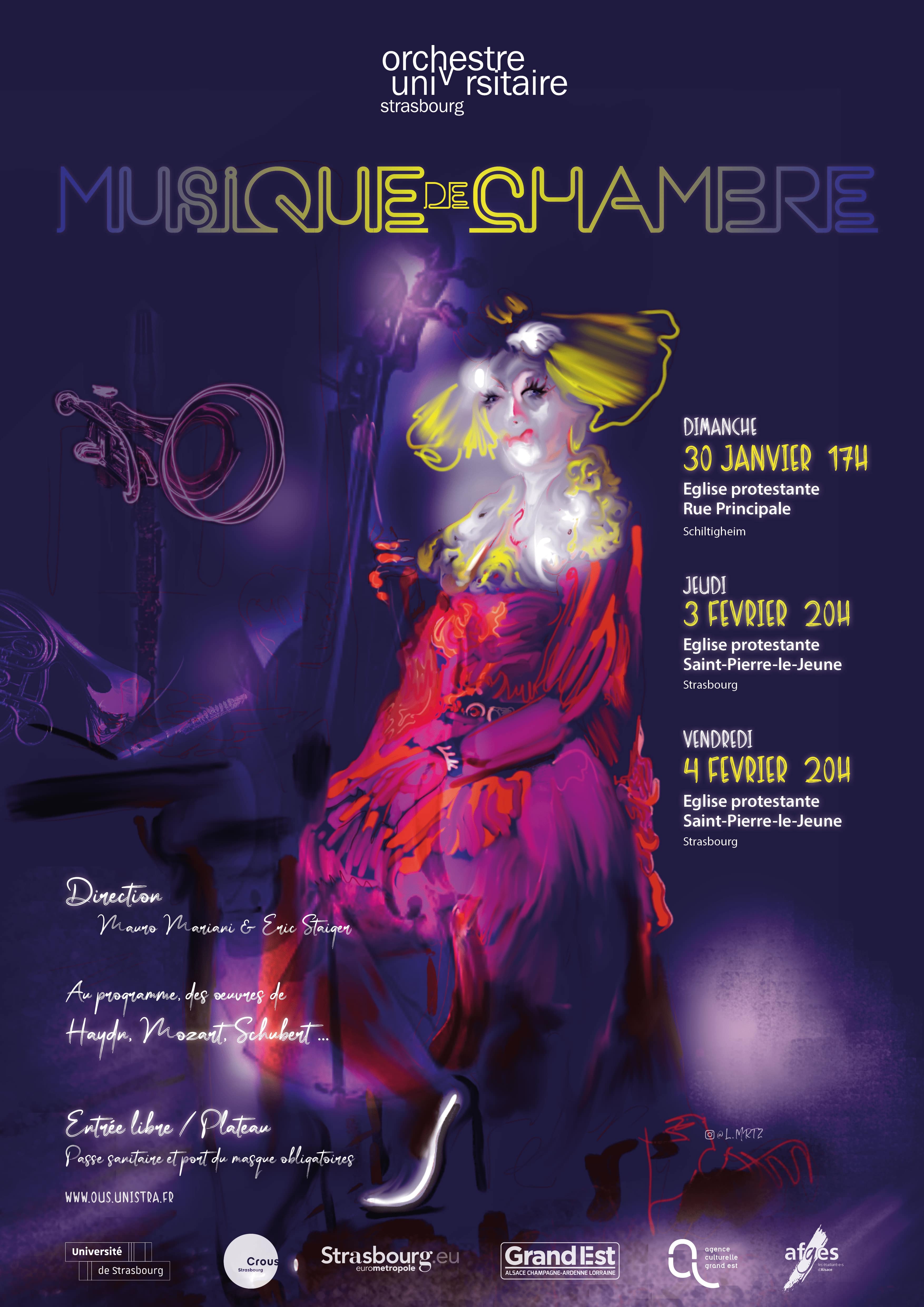 Retrouvez les musiciens de l'Orchestre Universitaire de Strasbourg dans des formations très variées pour un programme qui le sera tout autant. Pour ces concerts, ce sont les musiciens qui ont décidé de former leurs propres ensembles et choisi leur répertoire.