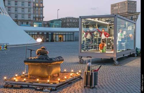 Quatre comédiens, dans un container vitré installé place Stanislas, invitent le public à venir les écouter et dialoguer avec eux sur le thème du bonheur en prenant place à des bornes munies de casques audios. Via leur smartphone, les passants-spectacteurs s’inscrivent à un tirage au sort qui désignera un « spectateur privilégié ».