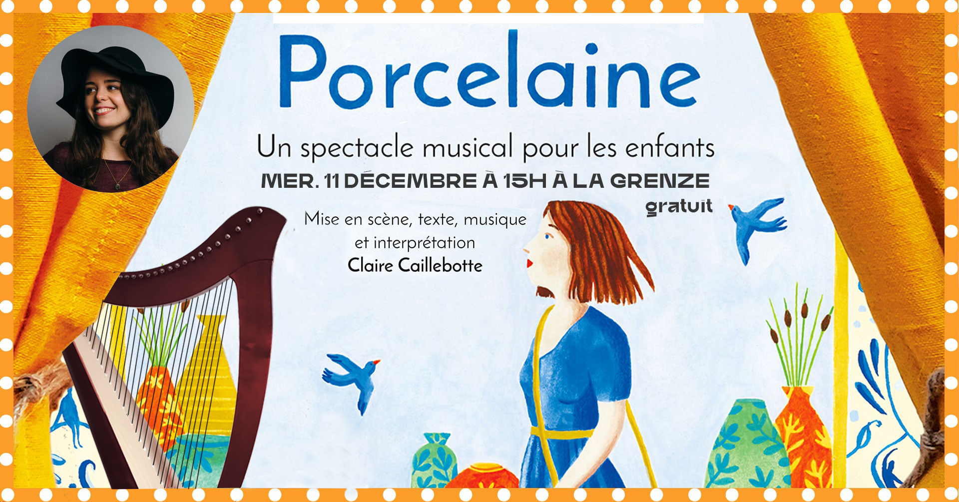 « Porcelaine » spectacle pour enfants avec la harpiste et conteuse Claire Caillebotte à La Grenze