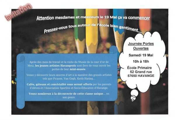 Le samedi 19 Mai aura lieu une journée portes ouvertes (10h/18h).