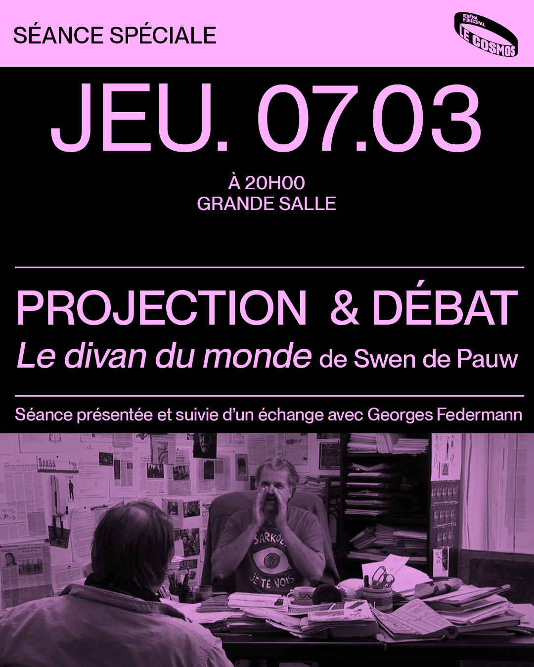 Projection & réflexions autour du film Le Divan du Monde au Cosmos