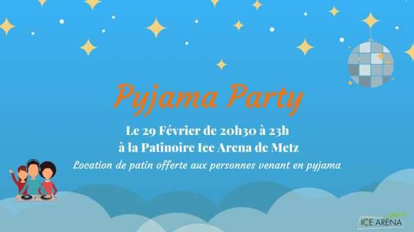 Ne ratez pas la Pyjama Party de votre vie ! La Patinoire Ice Arena de Metz organise le 29 Février une pyjama party de 20h30 à 23h et vous offre la location de vos patins si vous venez en pyjama ;)