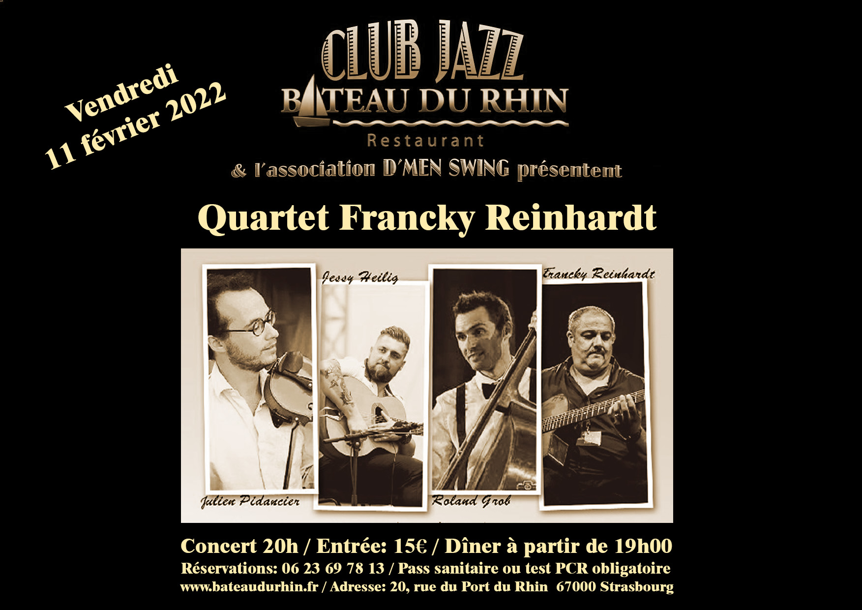 Francky Reinhardt est un prodigieux soliste. Il commence son apprentissage de la guitare avec Mandino Reinhardt puis avec Tchavolo Schmitt. Après quelques années à la tête du Trio Reinhardt, il décide de se consacrer à différentes formations mais également à l’enseignement de la guitare manouche. Il crée cette formation en Quartet jazz manouche,  concert à ne pas rater, réservez vite vos places